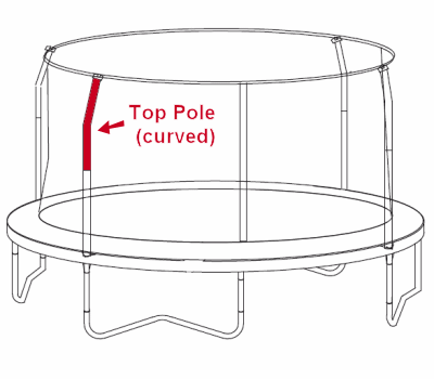 Replace your damaged enclosure pole on your JumpPod Classic New Version (2009-2011) ...Damage to enclosure poles is rare, but can happen if the trampoline is blown over in the wind. This problem can be prevented by using a tie-down kit, which anchors the trampoline to the ground. If your enclosure pole has been damaged, we do offer replacement poles as spares. The pole on this page is the curved top enclosure pole, and is compatible with the JumpKing JumpPod Classic trampolines manufactured during the years 2009-2011. Earlier models have a top pole that is straight instead of curved. The pole is sold without the foam protector or the plastic insert at the top that holds the net in place, both of which can be ordered separately if required.