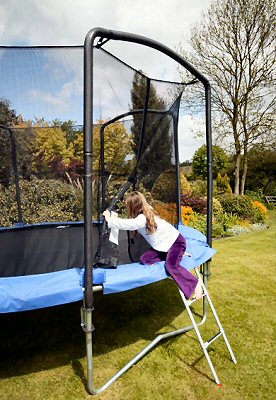 Universal 10ft Trampoline Safety Enclosure for all trampolines with 4 leg pairs ... Trampoline safety nets are NOT all the same. The 10ft Funring is a second generation safety enclosure net from Jumpking and is one of the best available. The vertical poles are joined alternately at the top, giving greater strength to the frame, and avoiding the problem of the poles bending inwards. Also, the higher quality netting material is held off the poles and comes inside the pads, thus providing a higher level of safety than the more traditional first generation nets that are still sometimes offered for sale. Jumpking Trampolines offer some of the latest advances in trampoline design at very affordable prices. - Latest 2nd Generation Net