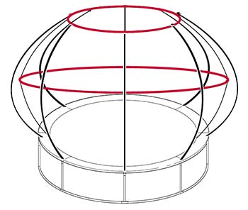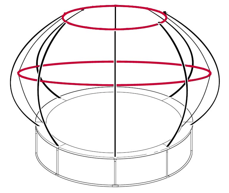 The circular rings at the top and middle of the net ensure the net maintains its shape. These rings are called the G3 Poles and are sold as a set of 2 rings for both the top and the middle. - Genuine JumpKing OEM spare parts