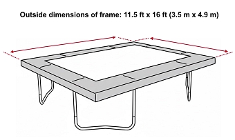 Rectangular-shaped Trampoline with Integrated Safety Net EnclosureThe new 11.5 ft x 16 ft Rectangular Professional from JumpKing is a complete trampoline set. The new Rectangular range comes with an integrated safety net enclosure, which saves on costs, looks better (no ugly fixing brackets), and cuts down assembly